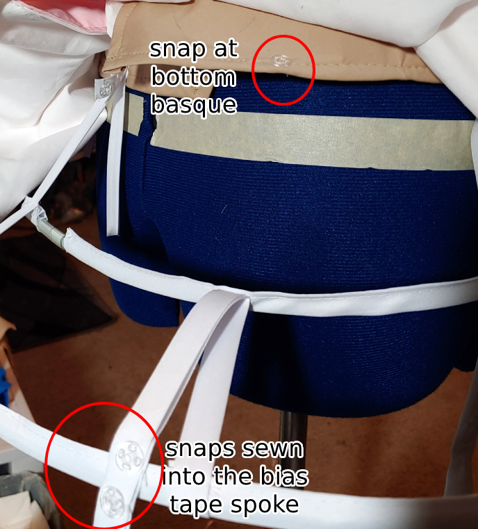 Repeat this process for the entire structure, and now you have a fully removable hoop structure that disconnects from the skirt and basque using strong snaps.