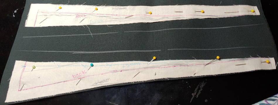 Pin the pattern pieces down to the fabric and add a seam allowance to the center seam, either 5/8″ or 1/2″, whichever you added before. Cut both sides out.