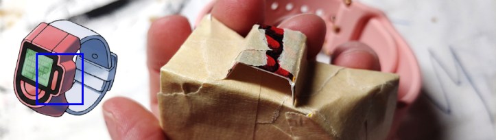Once you have the base taped, remove it from your wrist and unbuckle it. Wrap the base and band a few more times with tape until the watch band no longer slips. We’ll reinforce it when creating the body of the Poketch but the band must be a stable starting point.