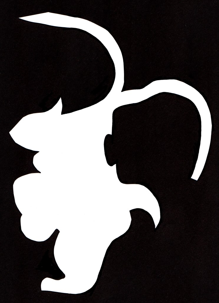 Details on the back of the black robe underneath the hood and read drape. The pattern is mirrored over the center back. To make it easier, I’ve already mirrored the pieces.