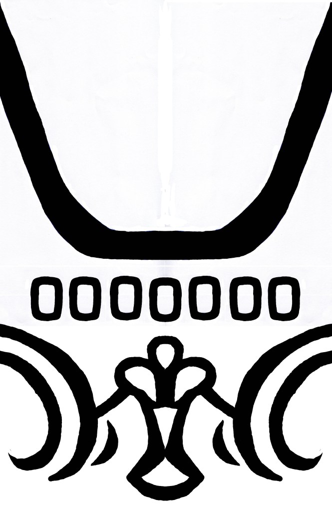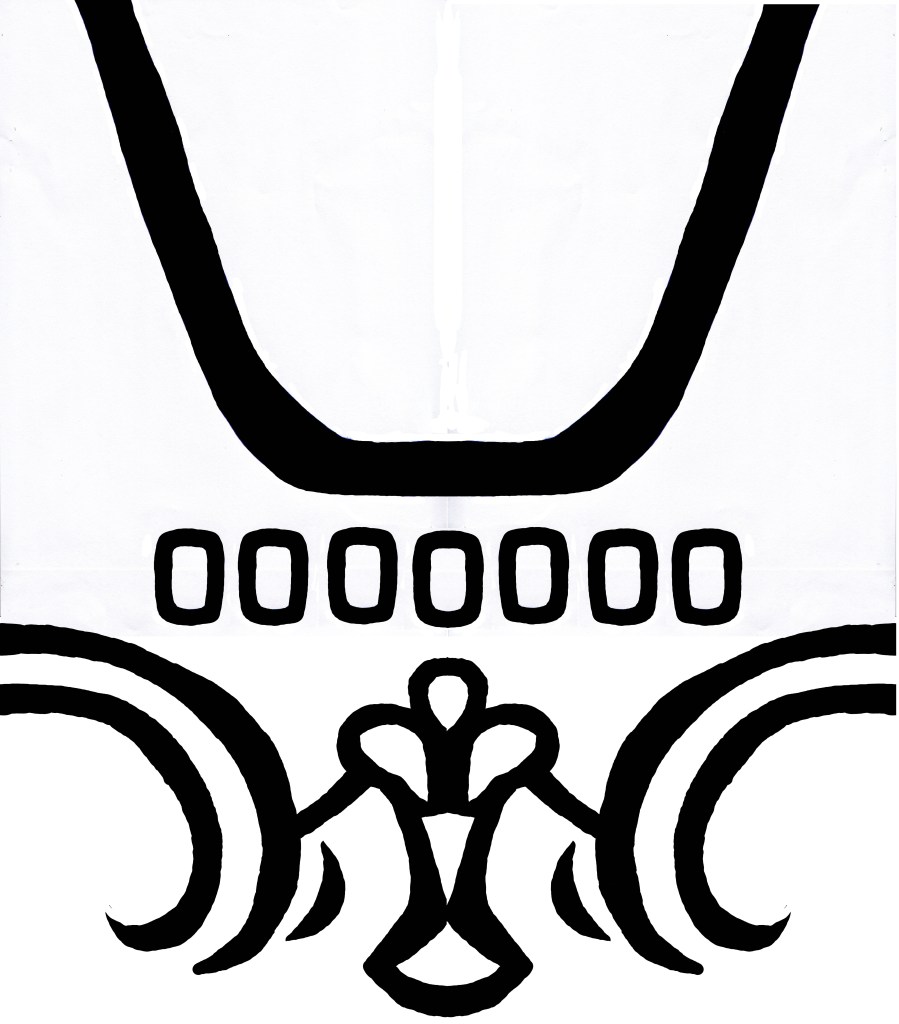 This is the border shown on the folded white drape along the skirt. I layered gold HTV over brown to make the designs. Each section is a part of a massive chain of patterns, fit specifically for a long and wide drape with a corner in the middle. Match the numbers to find the matching sections.