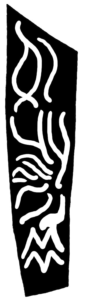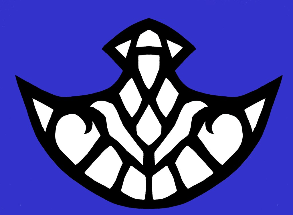 The design on the back of the jacket just underneath the collar. Pattern pieces include the composite design showing how they’re put together.