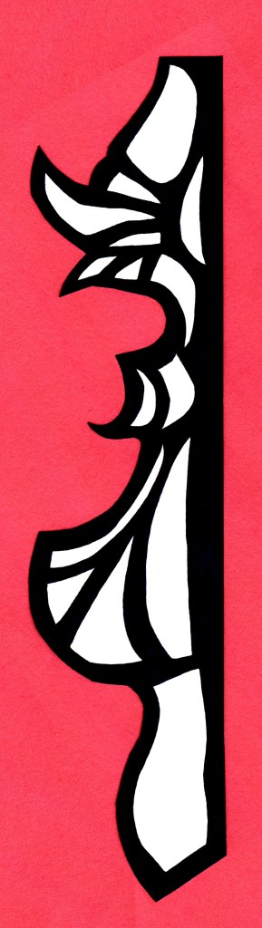 Here are the hip accents. For whatever reason, I have multiple designs for the main curved piece that hangs down, and I’m not sure which one I used. I also left the inner lines in the base pieces, which don’t need to be cut out. Perhaps these will be useful for someone also making these. The base was made using thermoplastic with thin foam for the details.