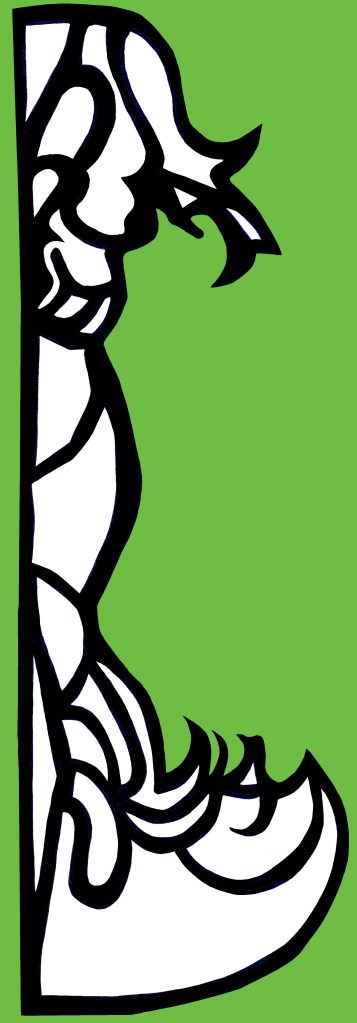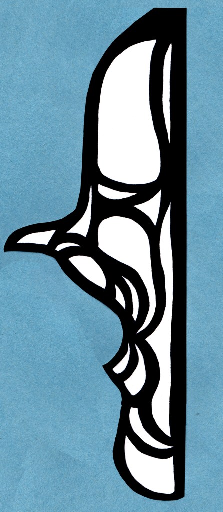 Pieces used to make the sandals. These were cut out of faux leather and glued to a pair of flat sandals, size 8 Wide US. I do have them, but I don’t wear them enough. Faux leather doesn’t like to stay standing up on my leg.